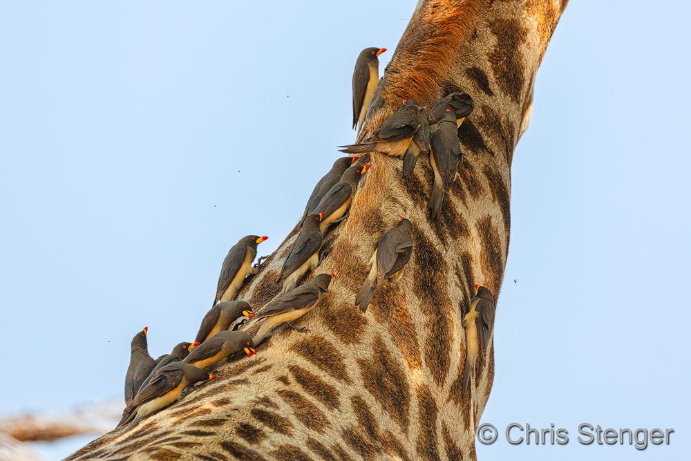 My favorites? Without a doubt, the funny-looking Hornbills, with their bizarre-looking beaks and interesting breeding behavior. Because of the resemblance of their beak to a banana, Yellow-billed Hornbills are often called flying bananas in Namibia. Photographing them is practically never boring. Unfortunately, Hornbills seem to be somewhat endangered these days due to the felling of nesting trees. The brightly colored Bee-eaters and Rollers are also favorites, of course. Perhaps less appealing, but certainly interesting, are the many carrion-eating birds such as Vultures, Marabou Storks, and Ibises.
