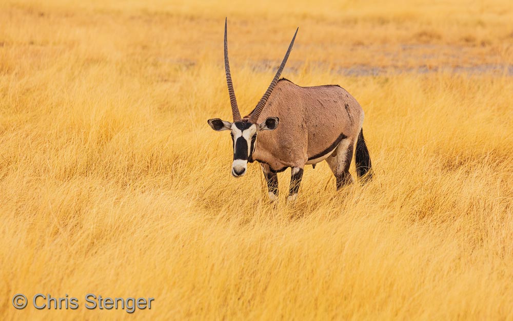 The Gemsbok is probably the best-adapted of all antelopes to the dry desert climate of large parts of Southern Africa. They can go for days without water. You’ll find them in the driest areas of Namibia, such as large parts of the Namib Desert. For this reason, the Gemsbok features prominently in the Namibian coat of arms. Gemsbok are somewhat grumpy animals, often arguing with each other. With their long horns, they look fearsome, and they are! They are not to be trifled with. Although they often fall prey to lions, the tables are sometimes turned. Various photos and videos of lions gored by the horns of a Gemsbok circulate online.