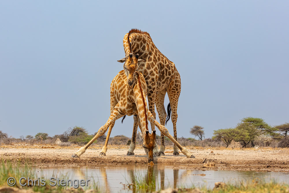 With its extremely long neck and legs and spotted skin, the giraffe is also a rewarding subject for photography. You’ll find them practically everywhere in southern Africa, even outside the well-known game reserves. They look quite clumsy, and it’s always a highlight when they drink. It’s quite an operation, with their legs spread wide so the head can dip down between them. The fighting of bull Giraffes is also fascinating. They slam their necks and heads together vigorously. However, this is difficult to capture well in a photo and is typically an action better captured on video.